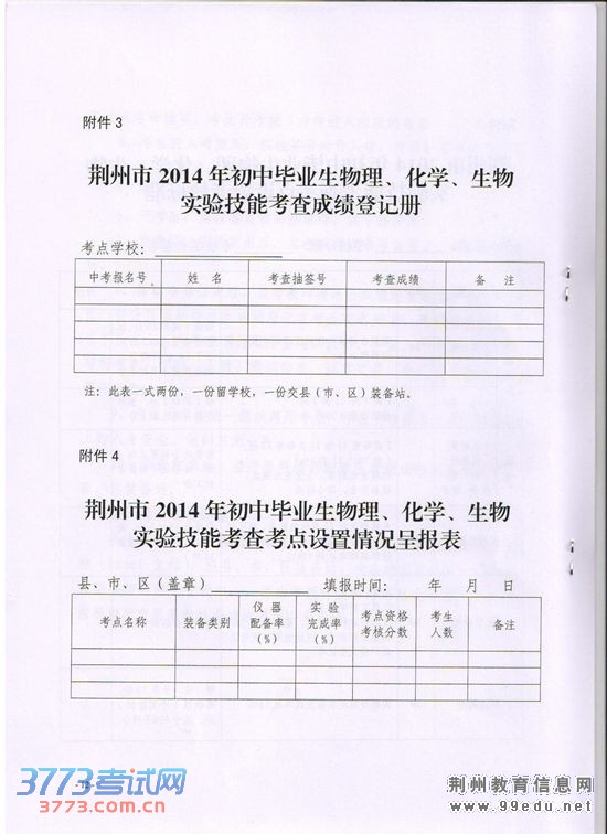2014荆州中考物理化学生物实验技能考查工作的的通知