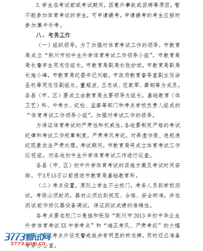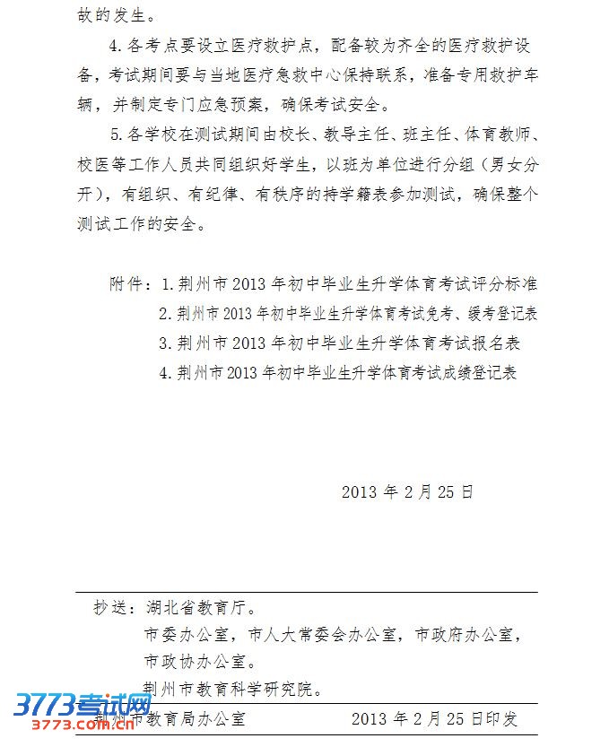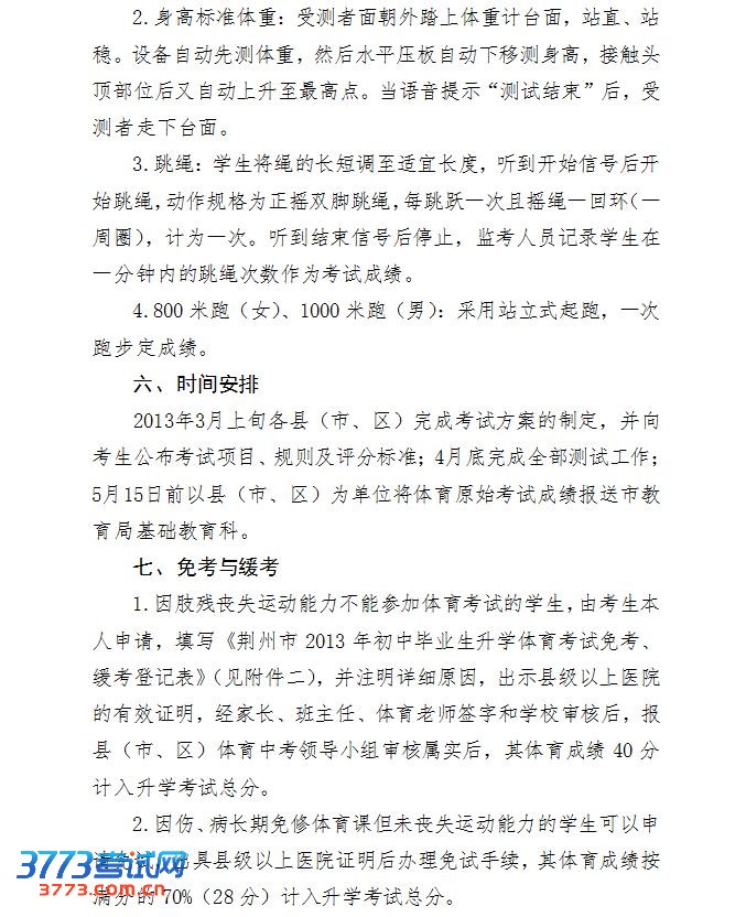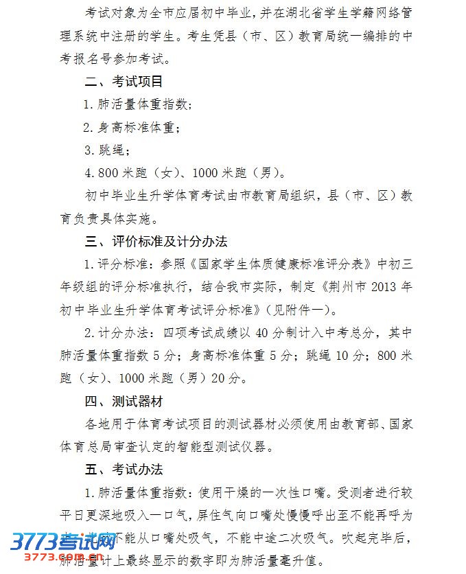荆州市2013中考物理化学生物实验技能考查考务细则