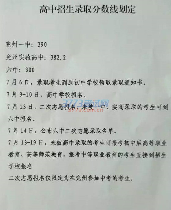 2016兖州实验高中分数线 兖州实验高中录取分数线