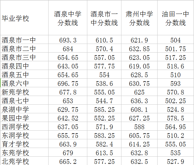 2020年肃州城区省市级示范性普通高中50%均衡定向计划录取分数线