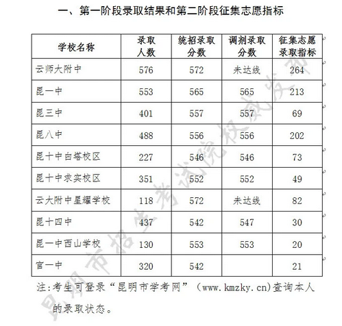 2021年云南昆明第一,二阶段录取分数线公布,希望对同学们有所帮助,仅供参考。