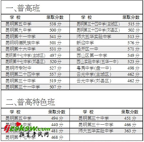 主城18所普通高中面向主城招生录取分数线昨日揭晓。据昆明市中招办提供的分数线情况,新迎中学普高班录取线576分,经开区一中571分,昆明第二十四中学557分。同时公布的录取分数线还包括主城3所普通高中面向郊县招生的分数线,以及7所普通高中普高特色班录取线。