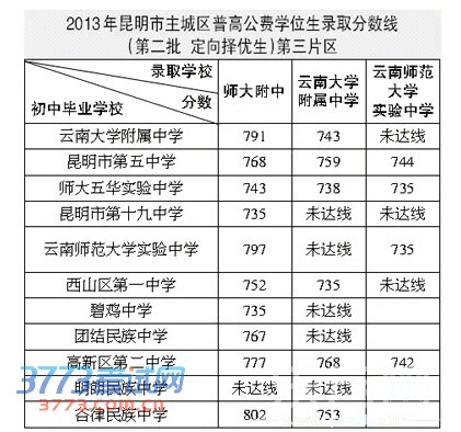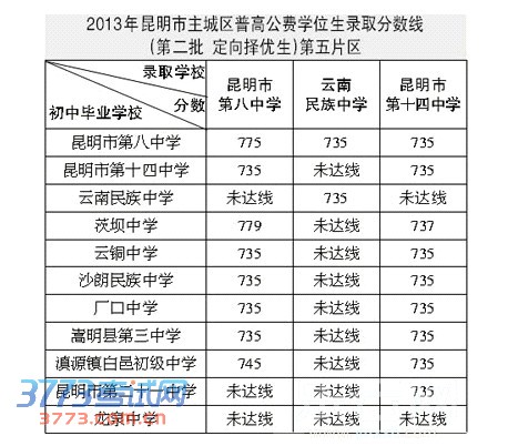 昆明铁路局三中官五中2013年录取分数线(公费生)