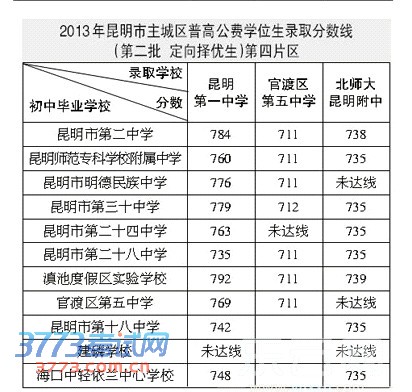 昆明铁路局一中官六中2013年录取分数线(公费生)