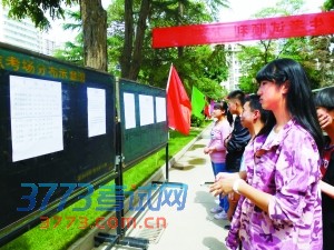 考生仔细查看“考场分布示意图”本报记者武永明摄