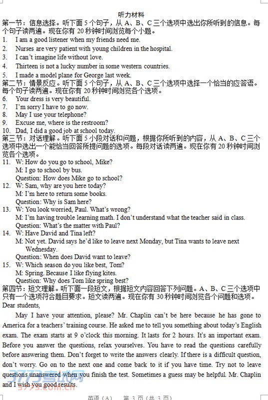 2014兰州初二中考科目Ⅱ地理生物考试举行