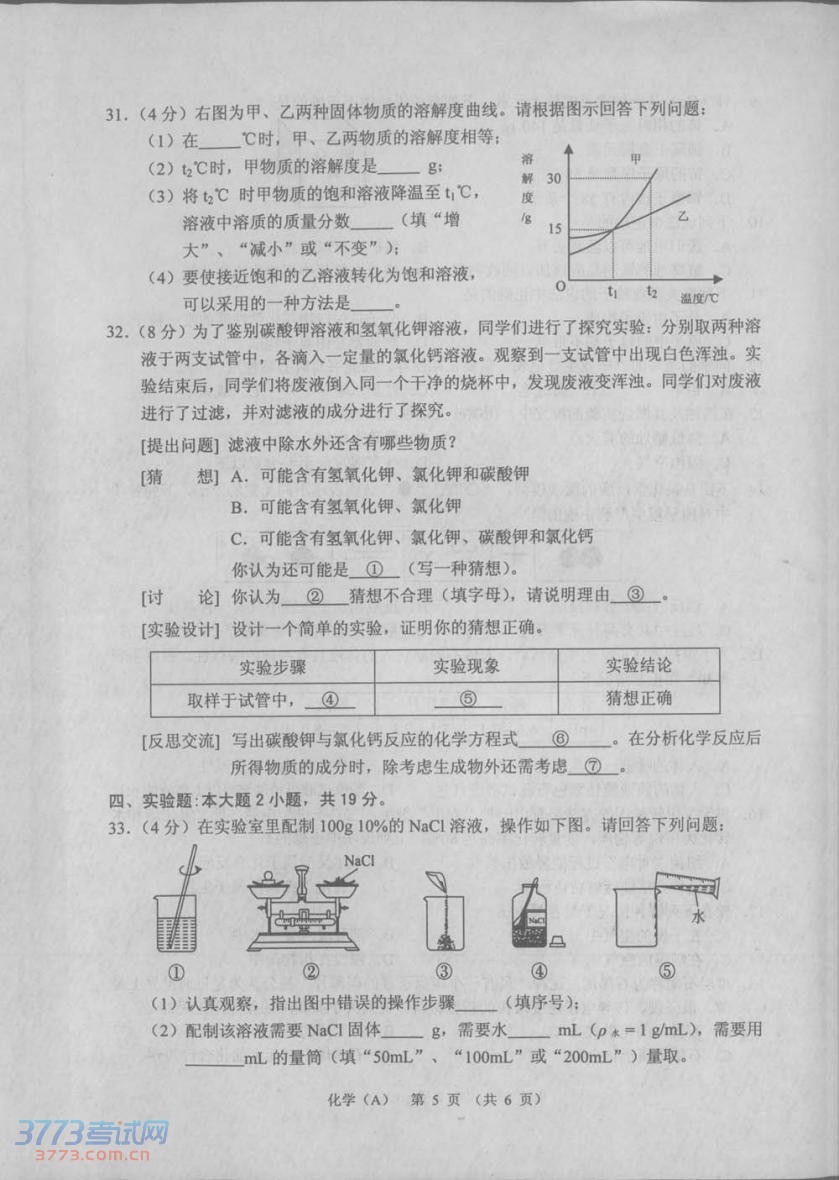 2014兰州初二中考科目Ⅱ地理生物考试举