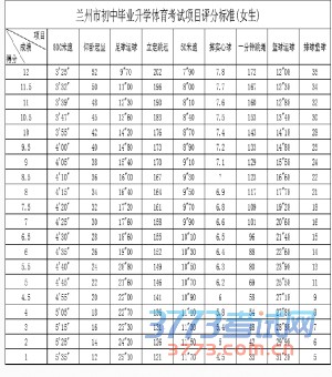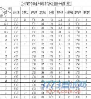 “兰州市初中毕业升学体育考试项目评分标准”(见图)