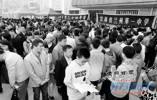 每日甘肃网-兰州晨报讯(记者武永明 实习生何威)4月25日,2015年兰州市城市四区中考招生咨询会在兰州市外国语高级中学举行。包括师大附中、兰州一中、兰炼一中、兰化一中在内的71所普通高中、职业学校、中专中技学校,以及兰州市教育局相关处室派出的咨询团,加上5万余名前来“取经”的考生及家长,使咨询会现场人山人海,这是近几年中考招生咨询会参会考生及家长最多的一次。