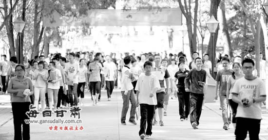 2014年参加中考学子步入考场场面。本报首席记者裴强摄
