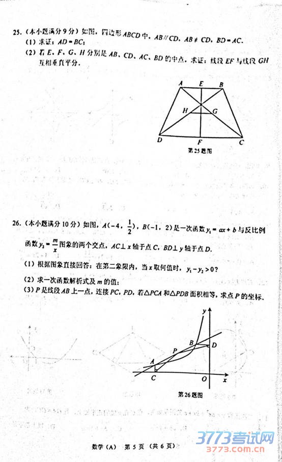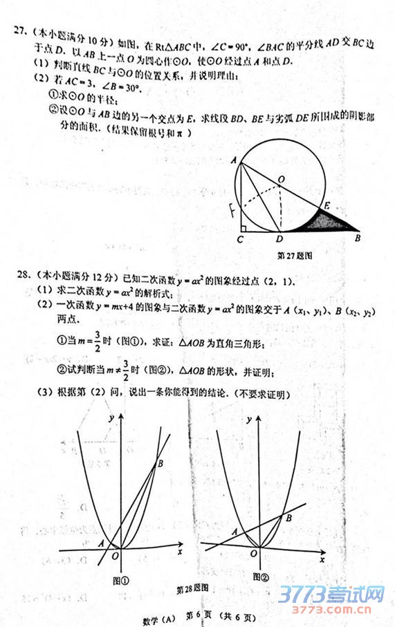 2015甘肃兰州中考数学试题及答案发布