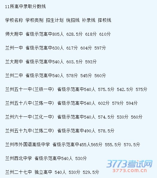 兰州五十一中(兰铁一中) 省级示范高中540人 575.5分 542.5分 575分