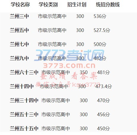 与去年相比,部分市级示范高中的统招分数线较高,兰州三中的统招线为536分,高出城市四区普通高中最低控制线近100分,直逼省级示范高中最低录取控制线540分;兰州五中、兰州七中的统招线也超过了500分。记者了解到,部分市级示范高中录取了一些600分以上的高分考生。