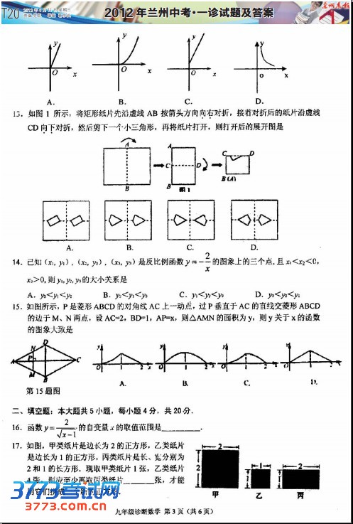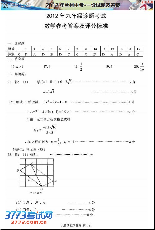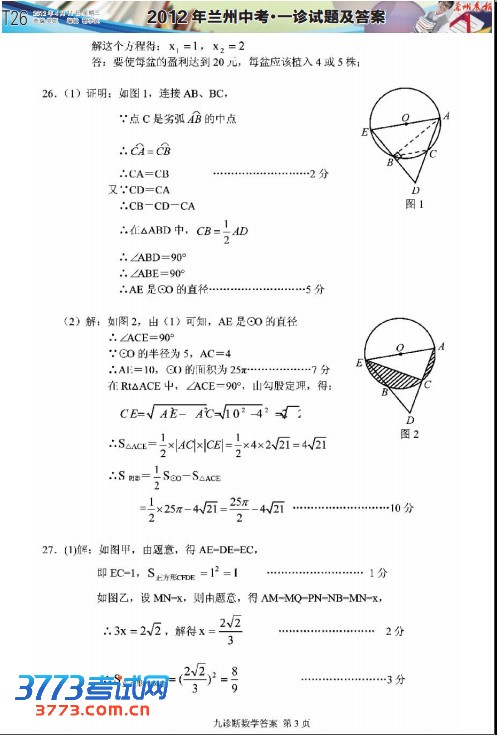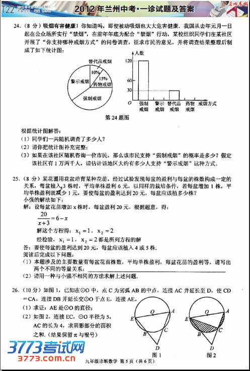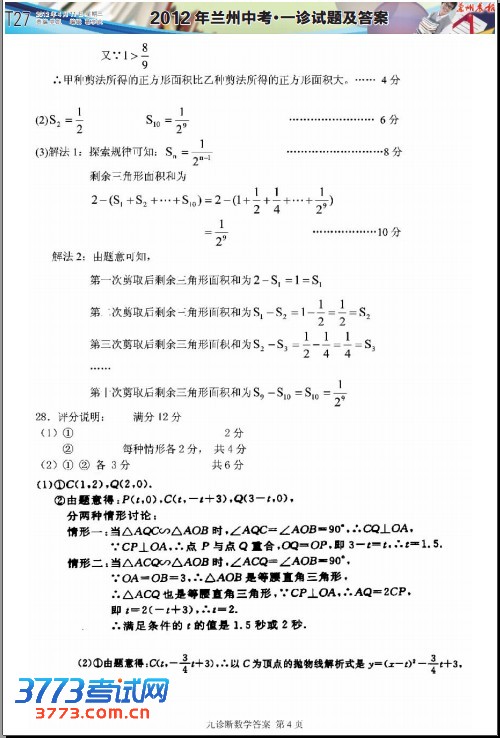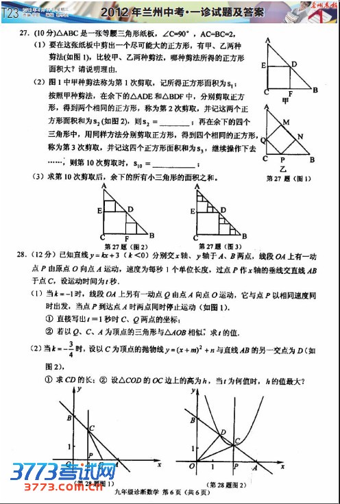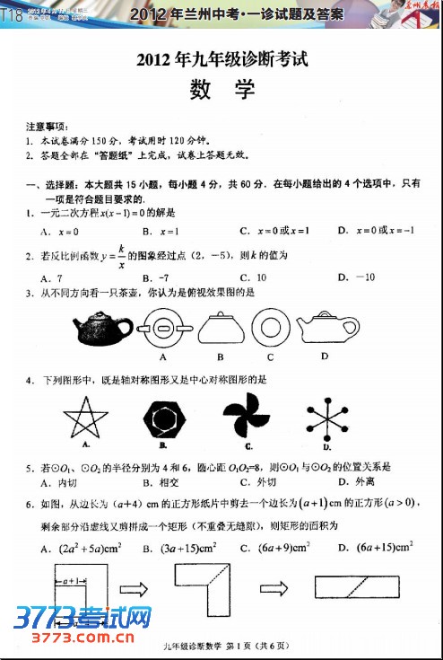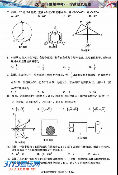 2012兰州中考甘肃省部分省级示范高中参加补录