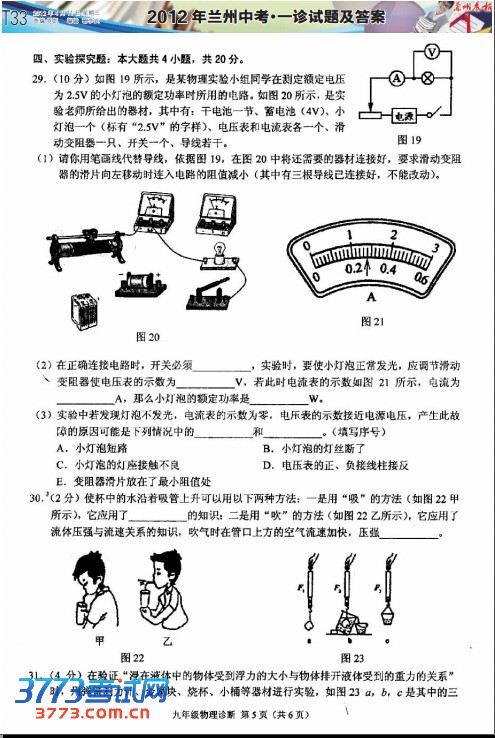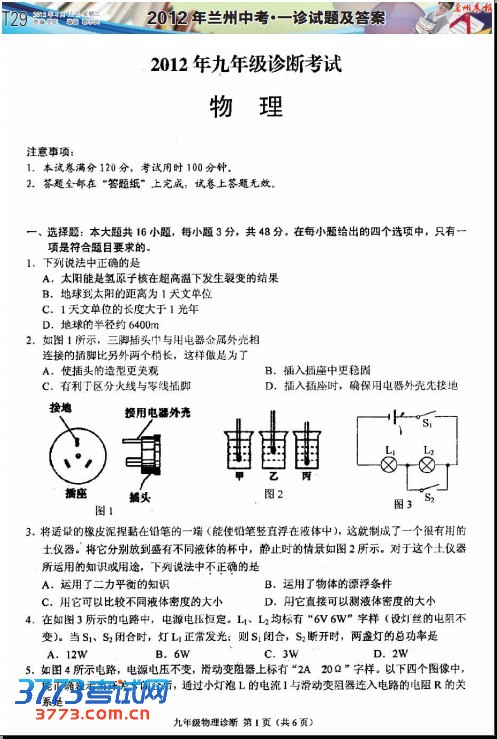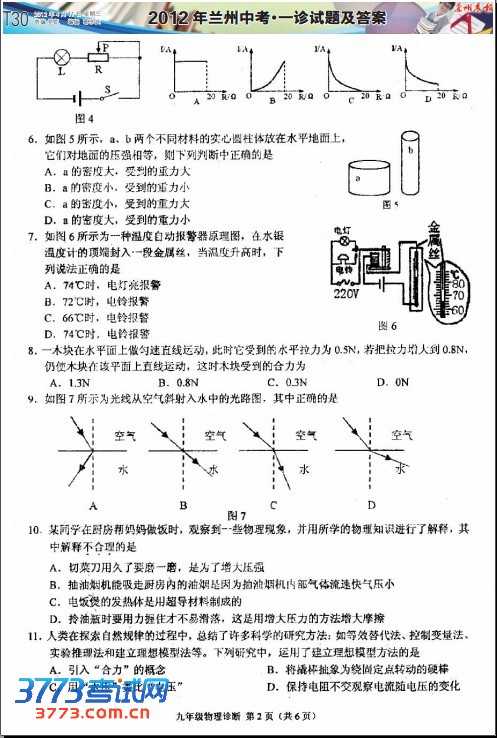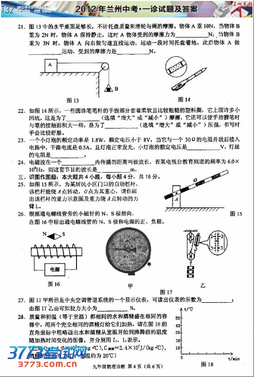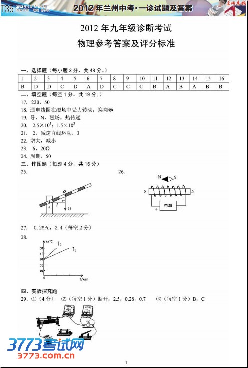 2012兰州中考甘肃省部分省级示范高中参加补录