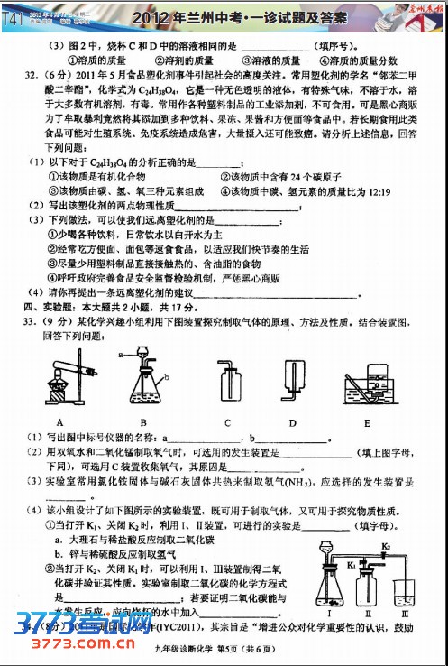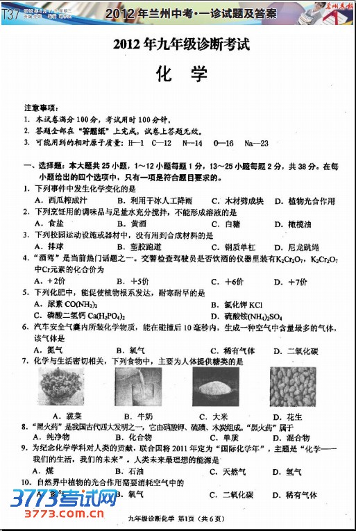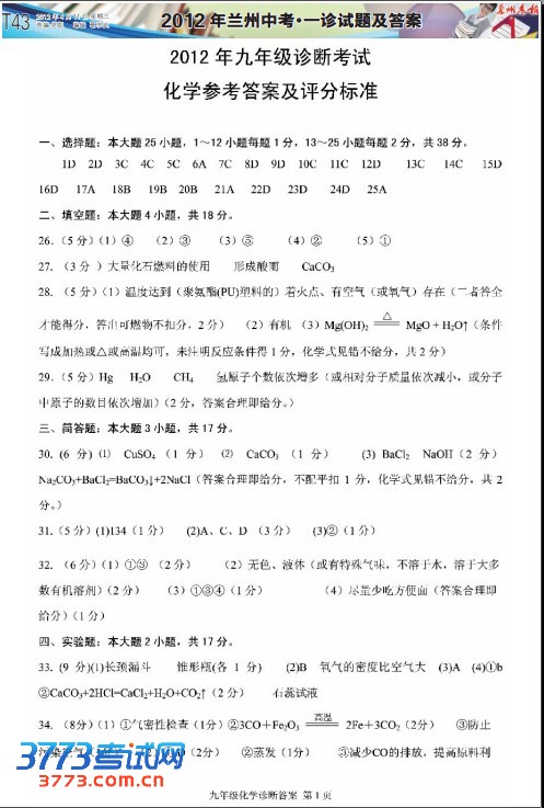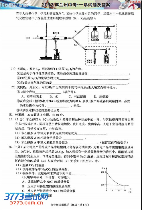 2012兰州中考甘肃省部分省级示范高中参加补录