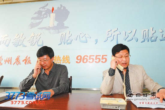 兰炼一中校长杨勇(左)、兰炼一中招生专干王新平值守热线。