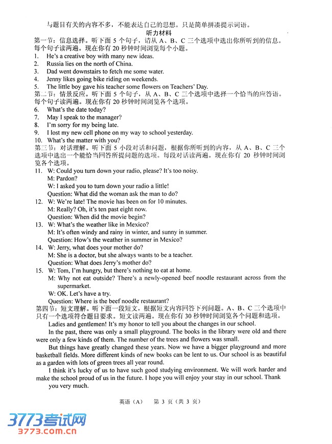 2013兰州中考科目Ⅱ变为2B3C(含)以上