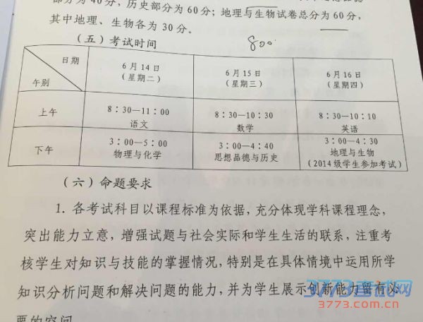 语文数学各150分;英语150分,其中,笔试120分,听力口语自动化考试30分;物理与化学总分150分,其中物理90分,化学60分;思品与历史总分100分,其中思品40分,历史60分;地理生物总分60分,地理生物各30分。