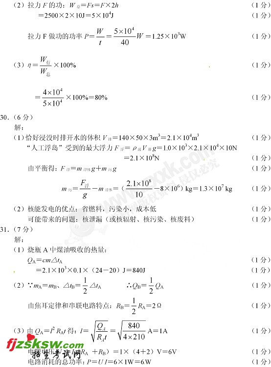 江苏淮安2011中考物理试题及参考答案