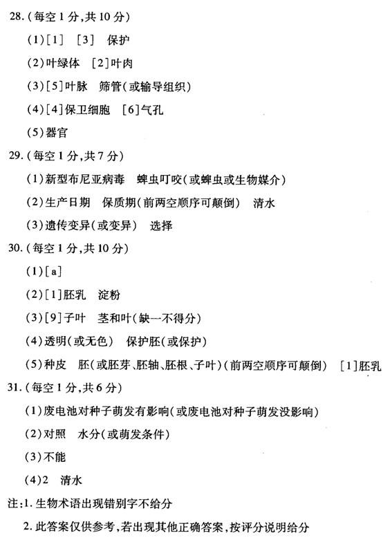 山东临沂2011年中考生物试题及答案