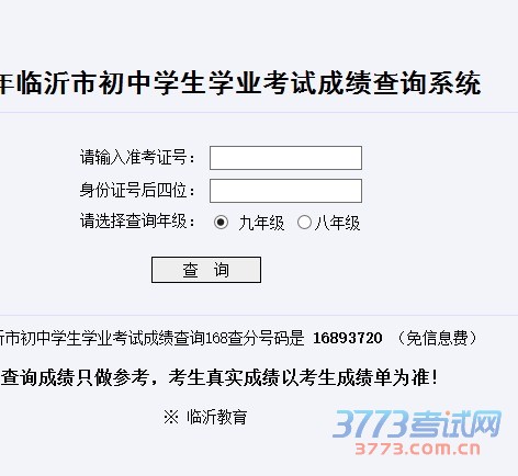 2015临沂郯城县中考成绩查询-郯城县教育信息网。2015临沂市初中学生学业考试成绩查询168查分号码是 16893720 (免信息费),查询网站登录临沂市教育局网站http://www.lyjy.gov.cn/ 或直接进入http://cx.lyjy.gov.cn/czcj.htm查询!