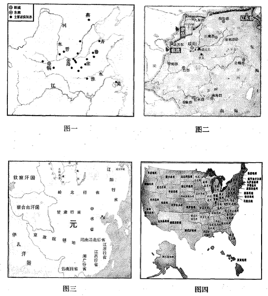 (3)请仔细观察图四的美国地图,结合所学知识说说它在地方上又推行的是什么制度?(1分)