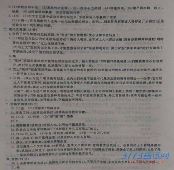 2015丽水中考语文试题及答案发布