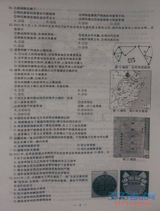 公布湖州中考试题、答案和中考作文。祝各位考生都能取得好的成绩。2015年浙江丽水市中考社会思品试题及答案:
