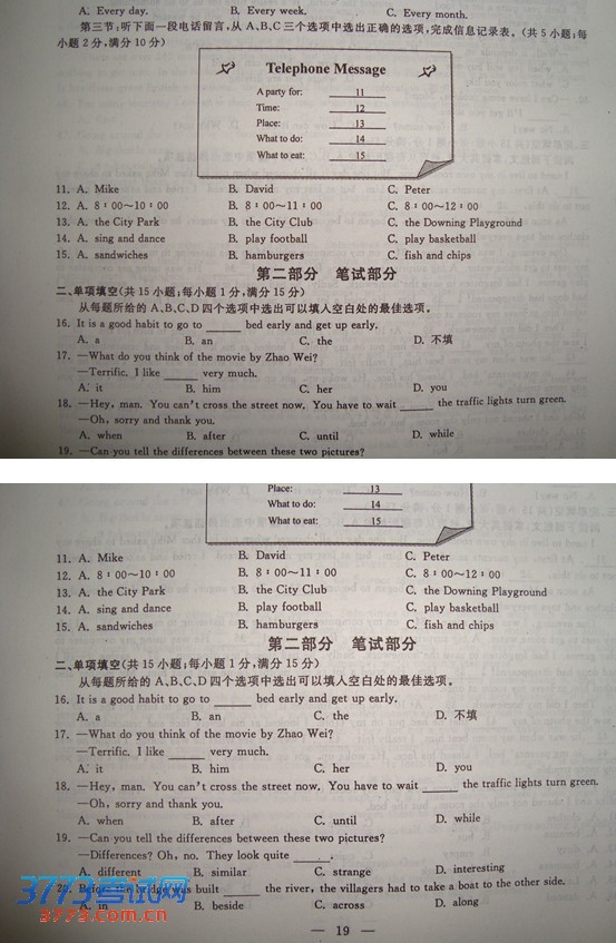 中考试题答案网