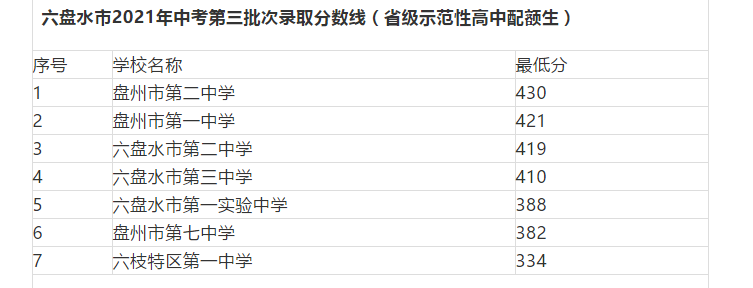 2021年贵州六盘水中考第三批次录取分数线公布,希望对同学们有所帮助,仅供参考。