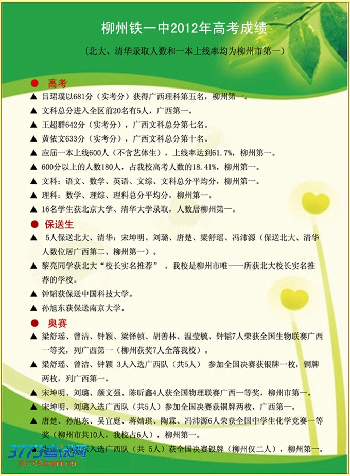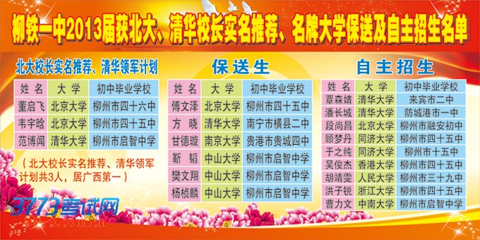 2013柳州中考获得示范性高中定向推荐生资格和条件