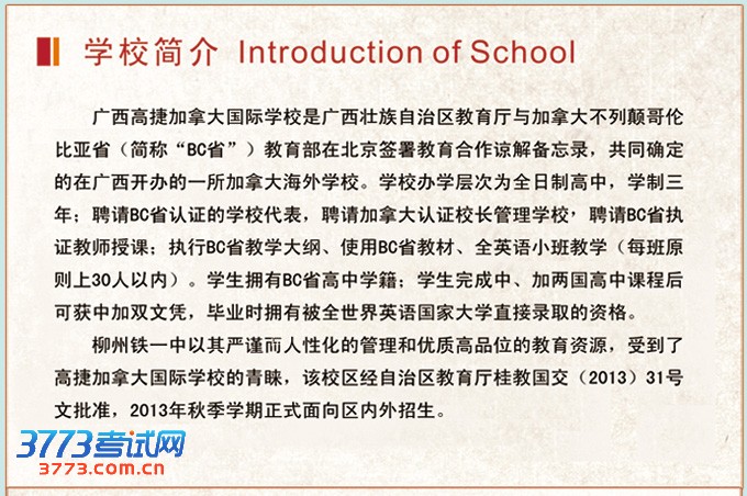 2013高捷加拿大国际学校柳铁一中校区招生简章