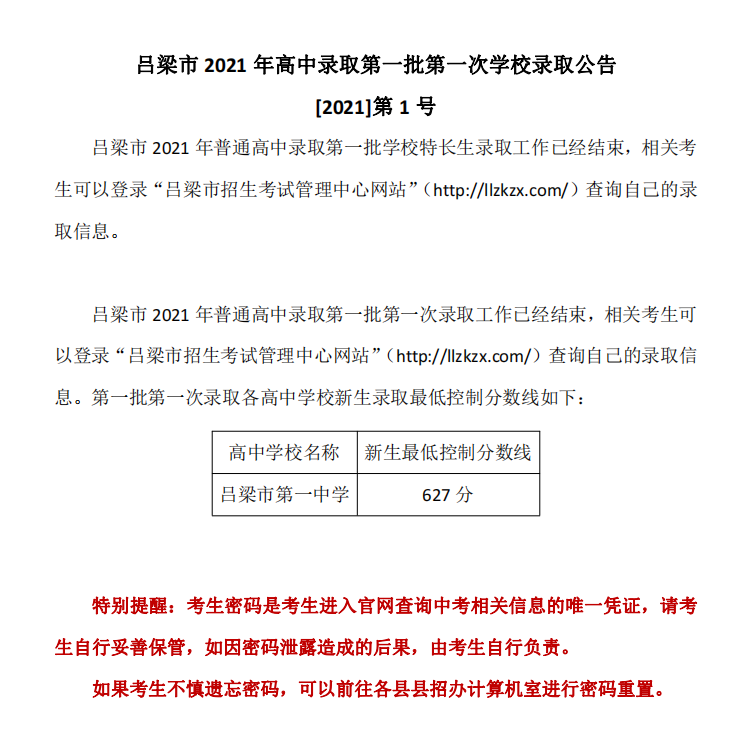 2021年山西吕梁中考第一批次录取分数线公布,希望对同学们有所帮助,仅供参考。