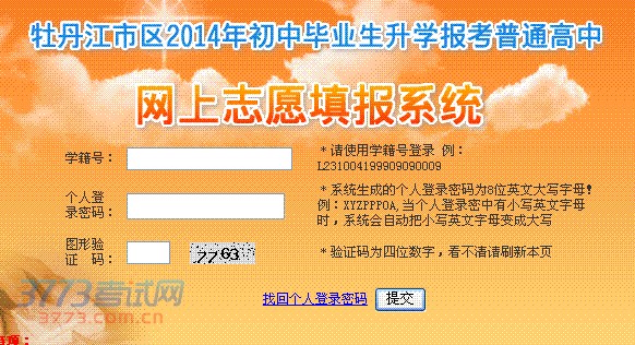 2014牡丹江中考网上志愿填报系统入口