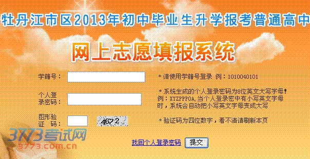 牡丹江市区2013年中考初中毕业生升学报考普通高中网上志愿填报系统