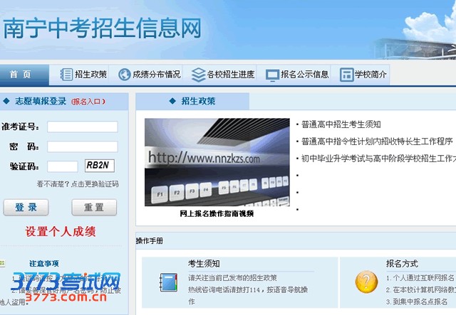 登录南宁中考招生信息网(www.nnzkzs.com),