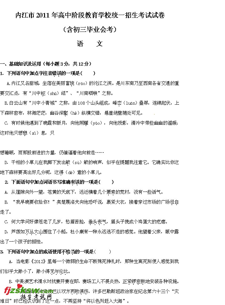 四川内江2011年中考语文试题