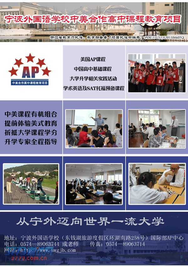 地址:宁波外国语学校中美合作高中课程教育项目招生办公室