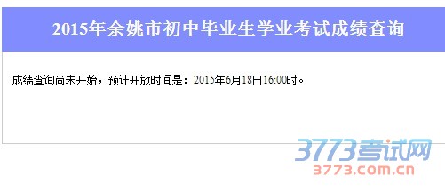 2015年余姚市初中毕业生学业考试成绩查询 成绩查询尚未开始,预计开放时间是:2015年6月18日16:00时。