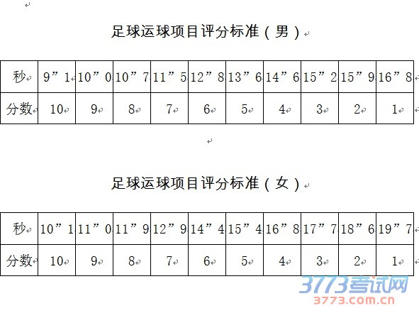 (2)选测项目:包括游泳、50米跑、跳绳(60秒)、篮球运球投篮、分值20分。2017年起,选测项目中增加足球运球项目(考试办法和评分标准见附件7)。