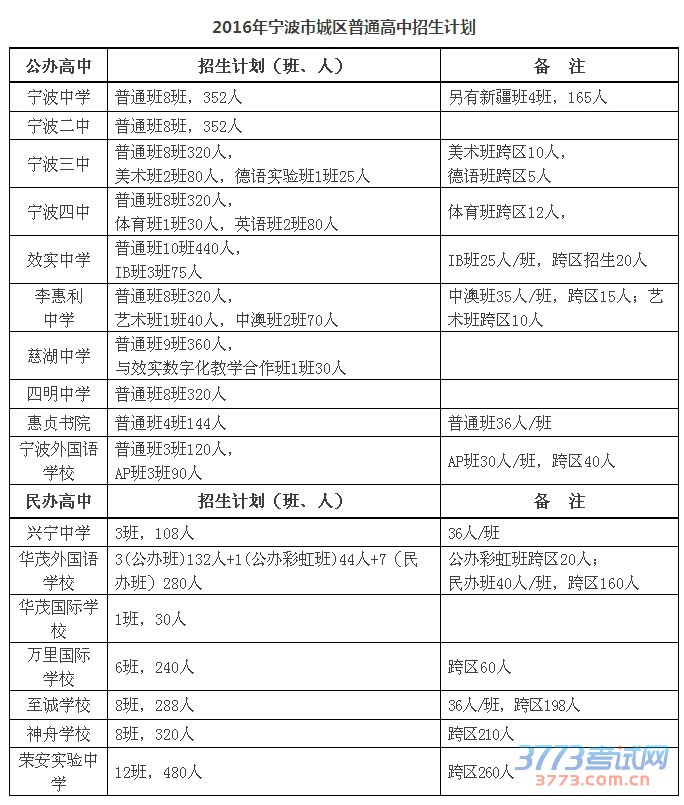 今天下午,2016年宁波市城区普通高中招生计划和全市普通高中跨区招生计划发布。