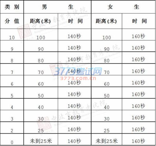 初中毕业学生升学体育考试游泳测试评分表