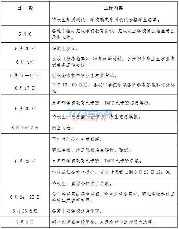 2017年中心城区高中段招生考试及招生工作日程安排表