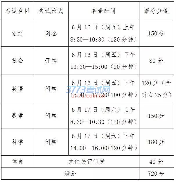 今年中考安排在6月16日(周五)—17日(周六)两天进行。