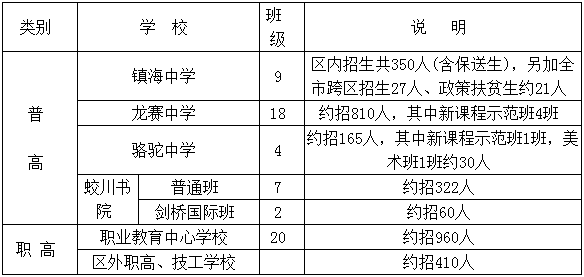 宁波镇海区2017年高中招生计划