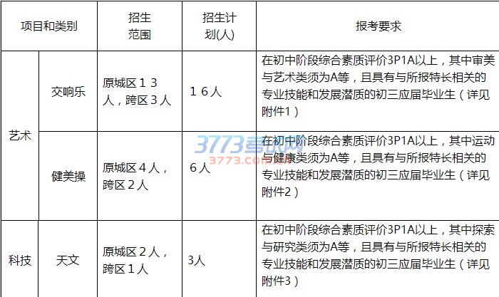 科技天文原城区2人,跨区1人3人在初中阶段综合素质评价3P1A以上,其中探索与研究类须为A等,且具有与所报特长相关的专业技能和发展潜质的初三应届毕业生(详见附件3)