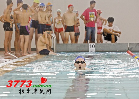 考生们在游泳健身中心参加考试。记者 徐文杰 摄