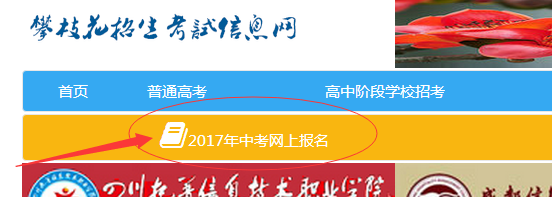 第二步:在攀枝花招生考试信息网上点击“2017年中考网上报名”图标,进入考生登录页面。