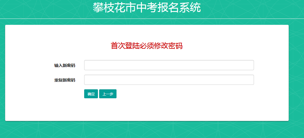 2、              初次登录,系统会自动提示对初始密码进行修改。考生需妥善保管,若忘记或遗失密码,可以本人凭身份证向区(县)招办或报名点申请恢复。